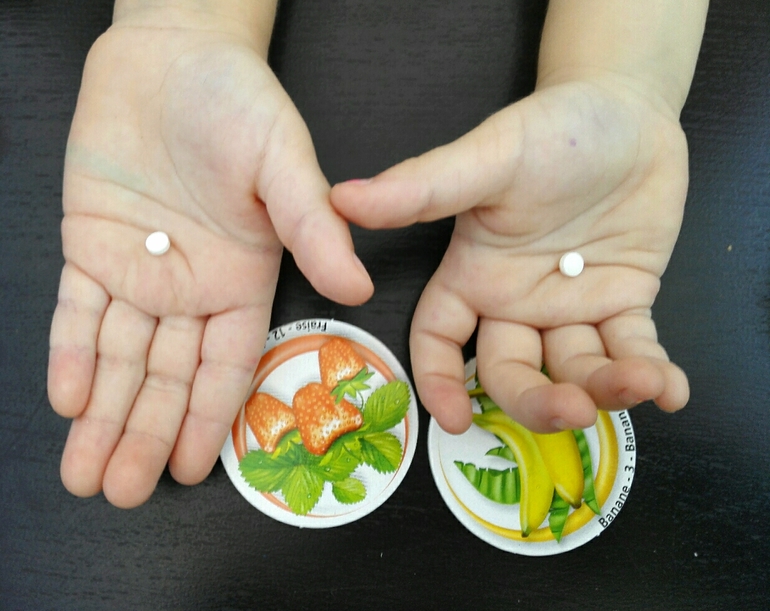 Как играем мы, ложу 6 карточек и 6 баночек с конфетками. Дочки пробуют и пытаются определить что за вкус. Дашуля много узнает, но не все! Сонечка с удовольствием лопает конфетки а узнает только кокос, банан, лимон и мяту))) Но требует игру громче старшей)))