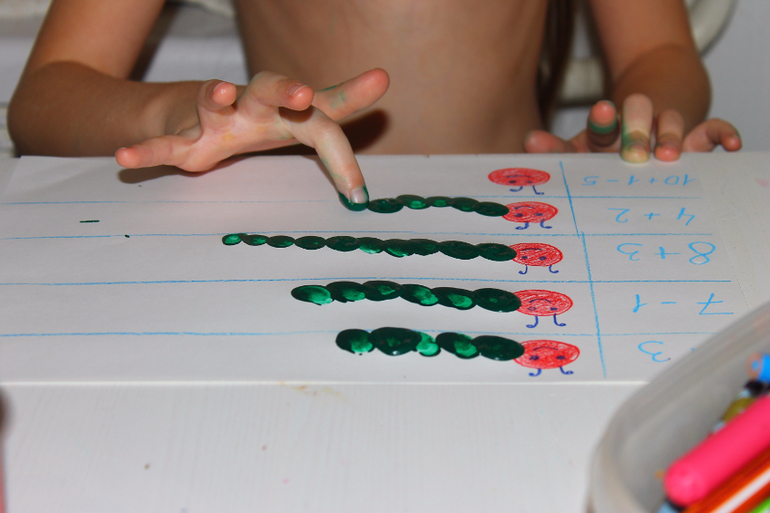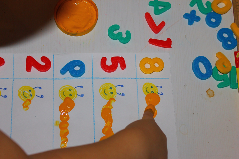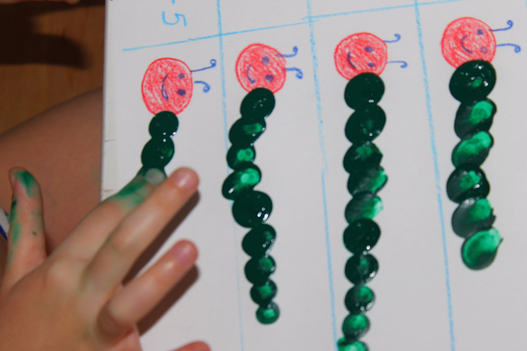Для Тёмы (3 года) нужно просто оставить нужное количество отпечатков пальчиков, смотря на цифру.