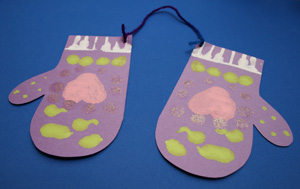 Варежка - аппликации, разрисовка макетов, сделать открытки - отпечатки ладошек. Мне понравились такие красивые идеи, простенько и хорошо для малышей: