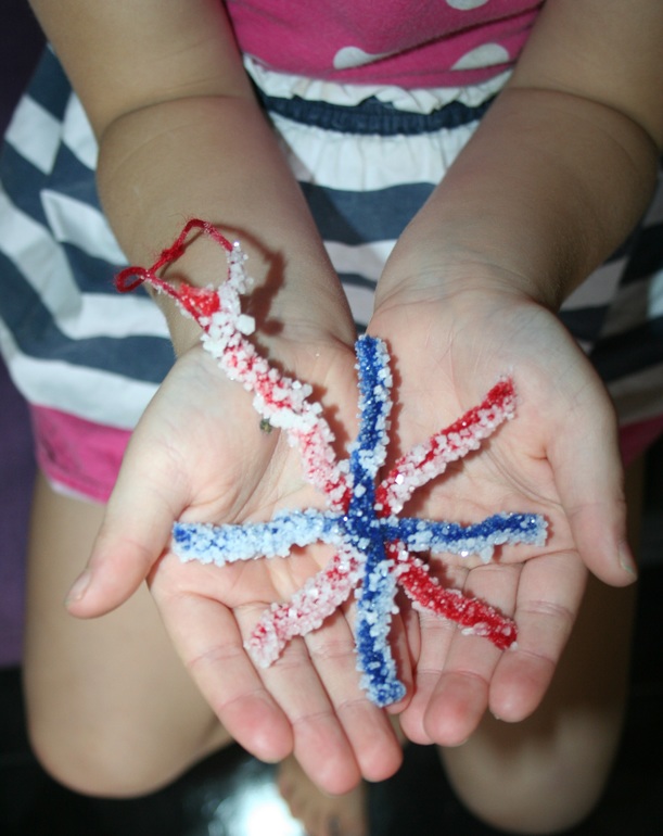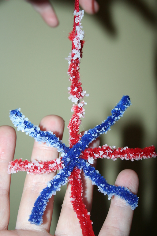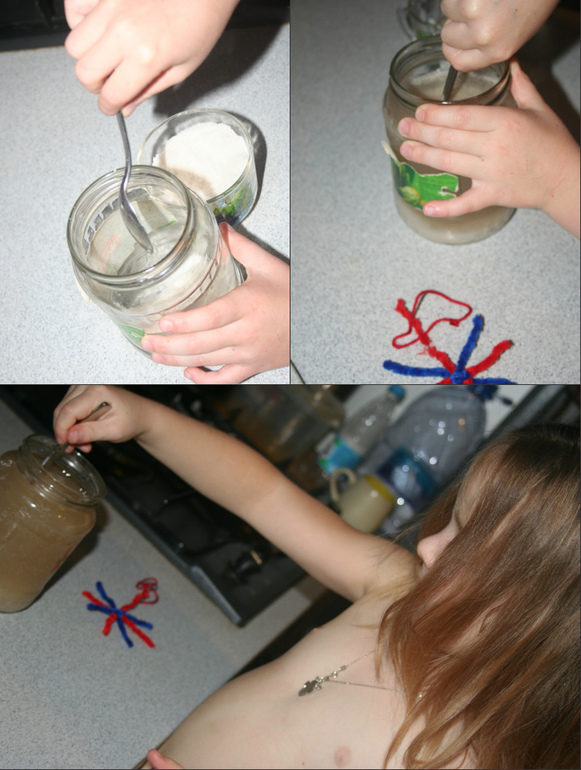 Рецепт настолько прост и незатейлив, что могу сказать совершенно откровенно, что справиться с его приготовлением самостоятельно сможет даже трехлетка, что, уж, говорить о моей кобылке :-) Камилка с удовольствием выполняла все этапы приготовления, хотя я и предупредила ее заранее, что может ничего и не получиться, потому что отзывов об этом типе домашних экспериментов больше негативных, чем позитивных. Но я очень надеюсь, что с нашей помощью у всех теперь получатся замечательные кристальные фигурки, будь это снежинки, елочки, снеговики или другие скрутки из пушистой проволоки.