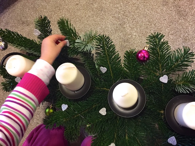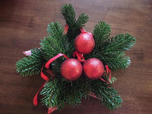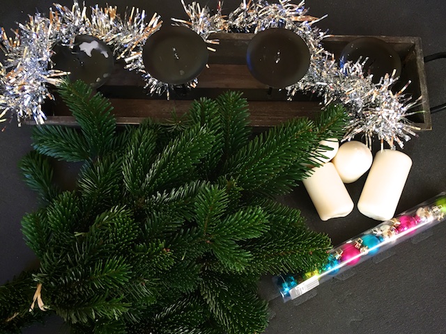 А можно сделать самим. И даже не обязательно это должен быть круглый венок, можно, как мы, взять специальную основу, пару веточек, набор шариков и сделать вот такой адвент.