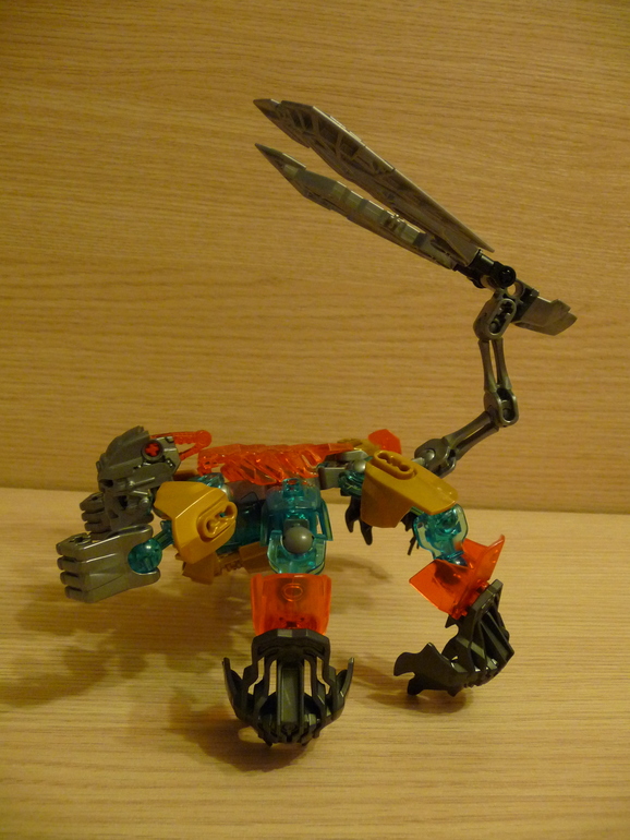 Ромка по инструкциям собирать уже не любит, сразу свое конструирует. В основном машины, трансформеров, роботов, монстров, пауков и скорпионов. Ну вот что-то типа этого (это кстати не лучшая его работа, так, на скорую руку)...