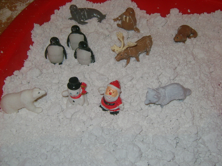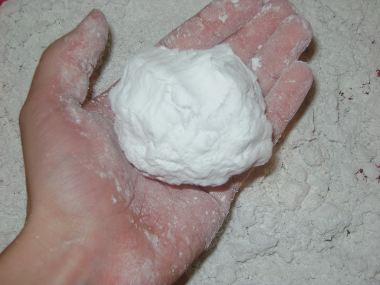И снег из крахмала получился очень мягким и липким