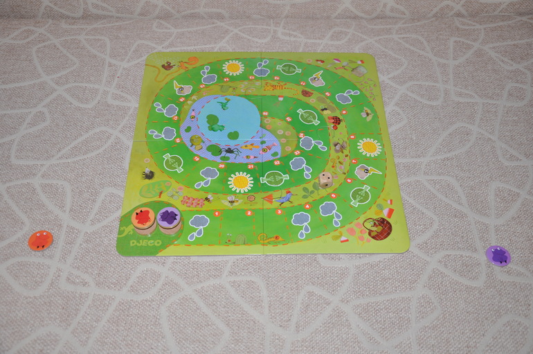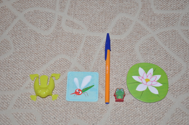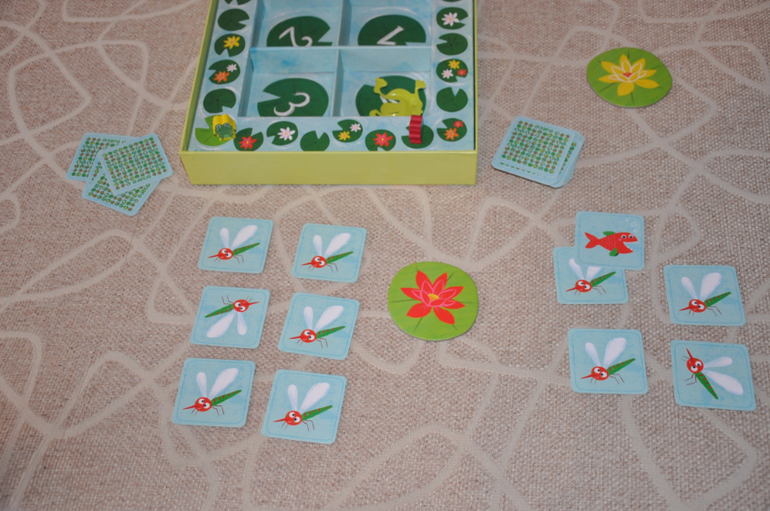 Поле перед игрой - жетоны нужны, чтобы не забыть, кто за какую лягушку играет: