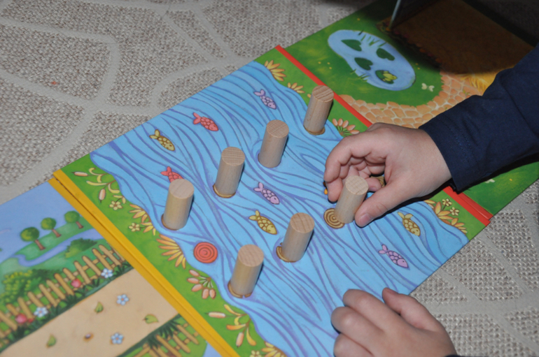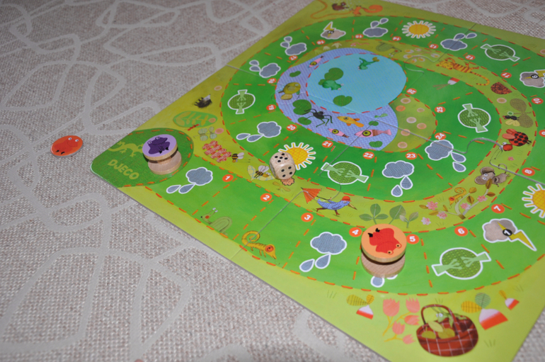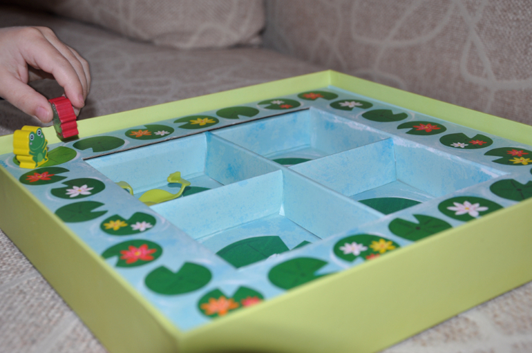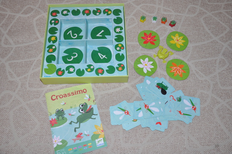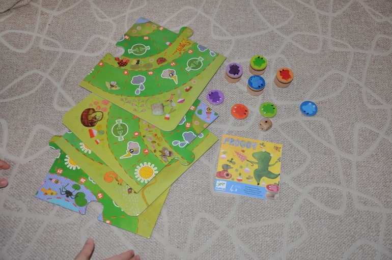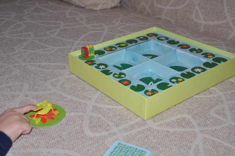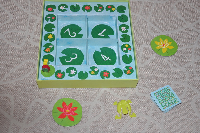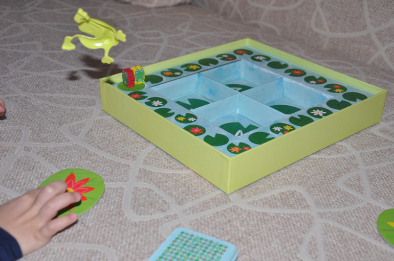 Казалось бы, все возможные варианты определения хода уже испробованы - кубик, карточка, стрелка...ан нет! Djeco придумали прыгающую лягушку!))