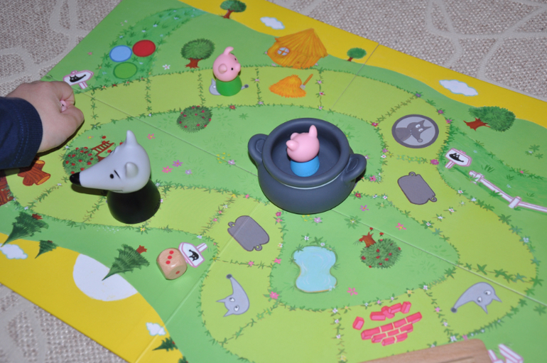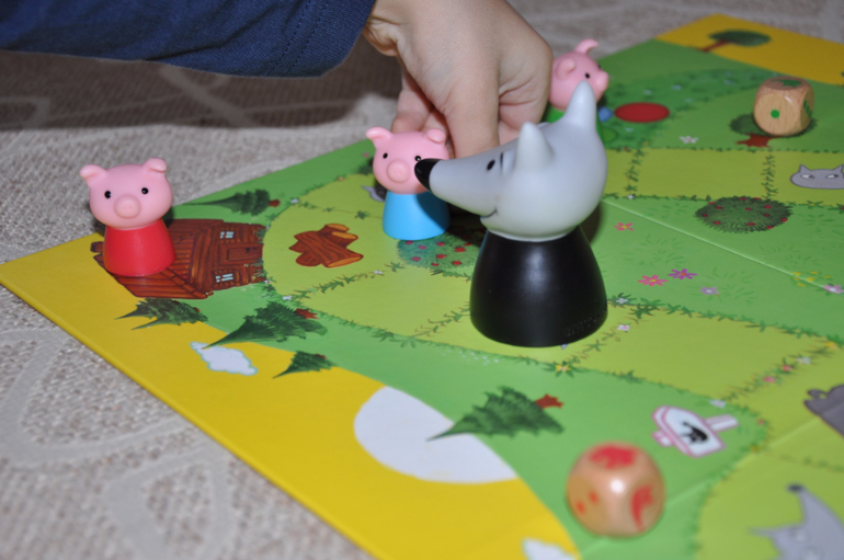В этой партии нам не повезло - всех поросят поймал волк, а дом мы даже не успели начать строить))