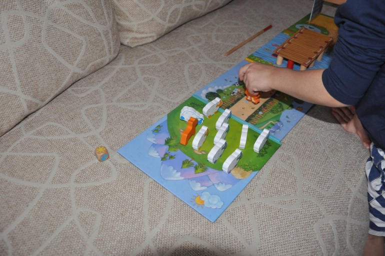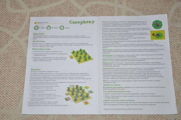 Эта игра тоже, скорее, на сотрудничество, ведь цель у всех игроков одна - привести персонажа к карточке "домик", попутно сняв "кошку" с дерева)