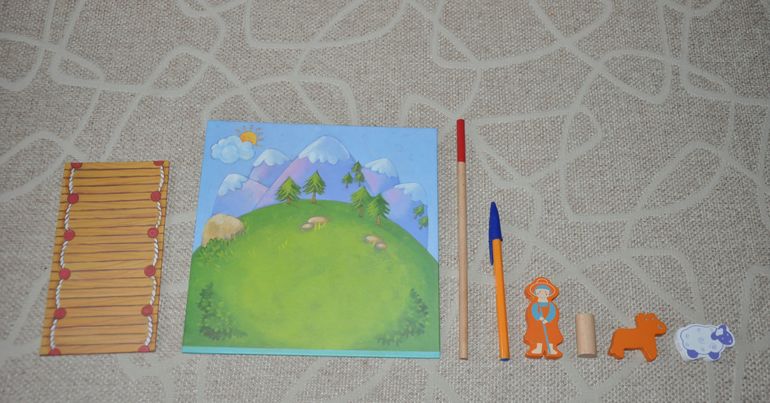 Теперь самый младший игрок берет из стопки 4 карточки с животными и расставляет их по сторонам поля - а ведущий партии должен запомнить, кто где расположился.