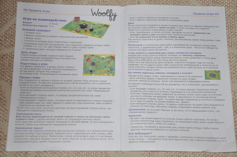 - если все три поросенка - в котелке, победил волк, если все три поросенка спрятались в кирпичном доме, то победили поросята и игроки.