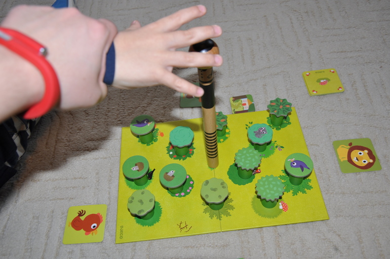 И мама начинает рычать и крякать, а Артур передвигать фигурку вслепую: