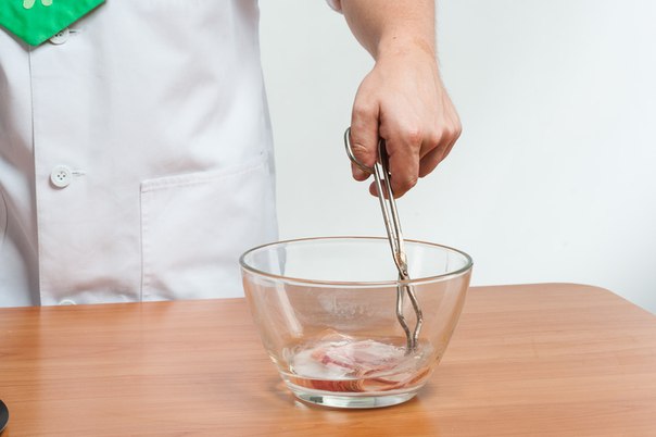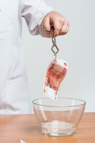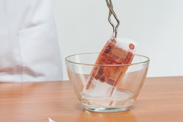 - теперь возьмем купюру щипцами и хорошенько пропитаем ее раствором;