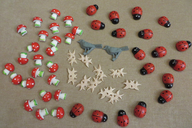 *** Различные фигурки, в т.ч. с клеевой основой *** Птицы, грибы, божьи коровки.