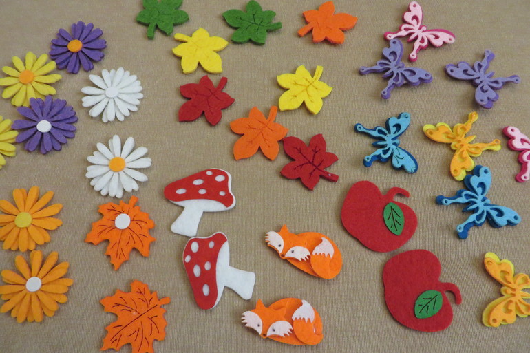 *** Набор декоративных наклеек FixPrice *** Сделаны из фетра, наборы по 8 шт. Бабочки, цветочки, листья, ягоды, яблоки, грибы, лисы.