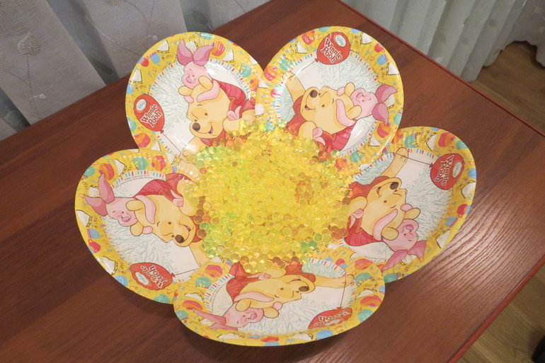 *** Одноразовые тарелки, стаканчики *** Тарелки можно использовать как поле для творчества, а можно сделать поделки. Например, шишки у нас дома теперь лежат вот в таком блюде (а начиналось всё с гидрогелевых шариков).