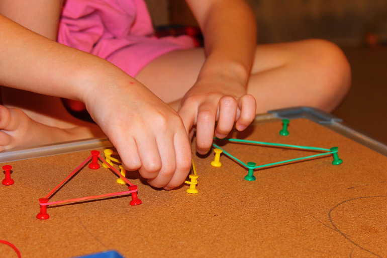 А Саша натягивала резинки и играла как на арфе,эксперементируя со звуком.