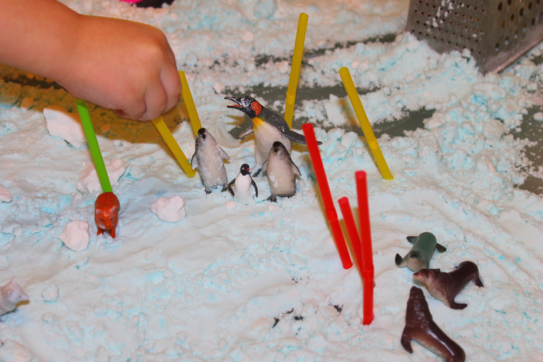 Знаки "больше","меньше" и "равно". Наш ледокол "Алектемий" отправился в плавание на далекий Южный полюс, с важным заданием- провести перепись местного населения. На каждую группу животных свои метки- соломинки равные количеству определенных животных. Сравнивали виды по количеству, по образу жизни,темпераменту.