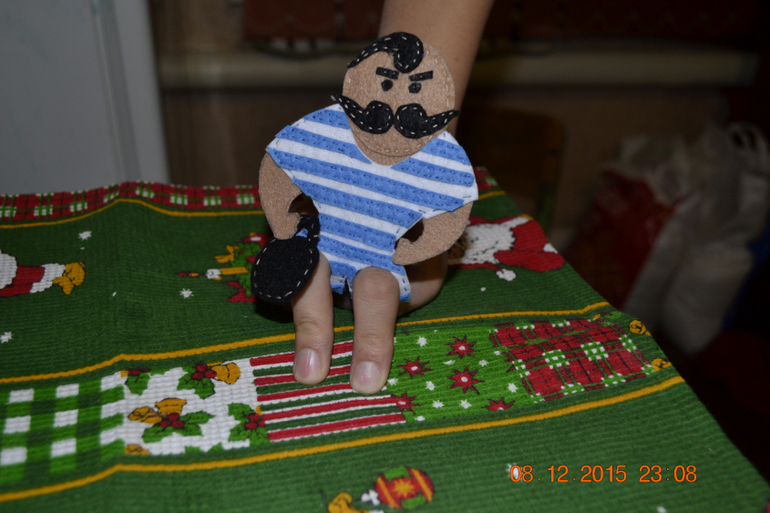 "Румяные щеки" - книга из моего детства. Она необычная. Необычна своими "газетными" рисунками и содержанием. Будучи ребенком, я несколько раз перечитывала её. И когда увидела у букинистов на продаже, не задумываясь купила. В книге идет рассказ о том, как бабушка (чуточку волшебница) прививиает ЗОЖ своему внуку и в этом ей помогает компания маленьких человечков - больших знатоков физкультуры: Гантелькин, Доктор Градусник и Чижик-Пыжик)))) Сегодня я хочу познакомить вас с Гантелькиным. Давно хотела сделать его, для проведения физкультминуток детям. Сначала пыталась сделать из картона, потом связать. Но ничего не вышло. Но тут я познакомилась с фетром. Любовь к фетру появилась у меня когда я увидела работы Евгении Ершовой. Мне безумно нравится всё что она делает.