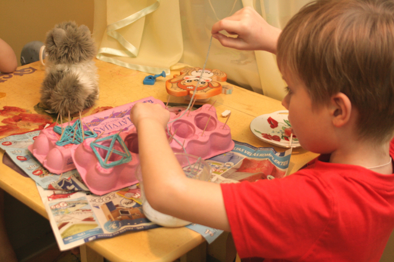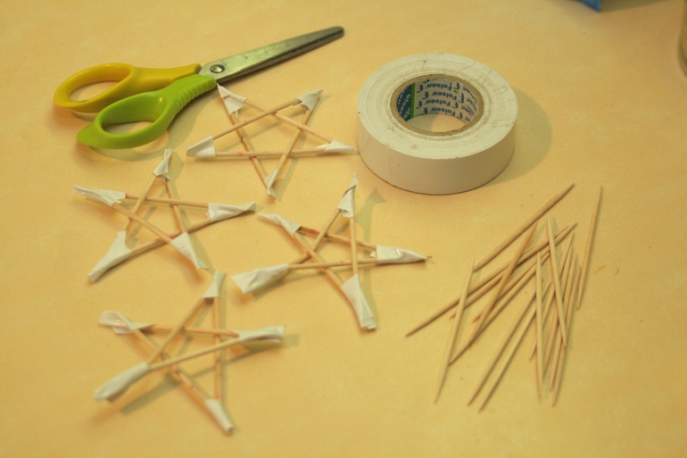 Затем попробовали сделать снежинки из нитки и клея. Будем делать еще, а то с водой переборщили.