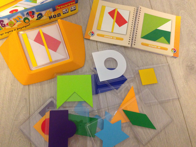 3) "Цветовой код" от Bondibon, много говорили об этой логической игре. Я считаю - это мастхев из логических игр. 18 пластиковых карточек, подставка и книжечка с заданиями. 100 заданий 4 уровня сложности. Надо сказать, над последними заданиями и я немного поразмышляла) Сын проходил самостоятельно, без моей подсказки 27 заданий, (можно сказать до уровня Юниор), дальше ему требуется моя помощь. мы собираем карточки , которые необходимы для создания композиции и я помогаю ему их собрать воедино. иногда легко у него получается, иногда - нет. мы прошли так еще 10 заданий, до 36-го. но ему гораздо больше нравится собирать простейшие начальные и понятные ему коды. вообще, от Бондибон я хочу много игр - отличное качество, и приемлемые цены, особенно в сравнении с Равенсбургер)