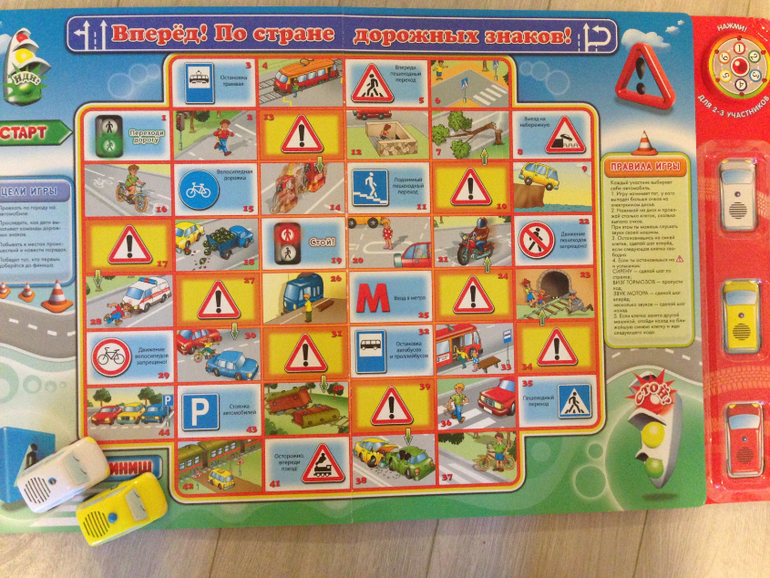 11) Еще появилась у нас такая электронная игра от Азбукварик (забыла сфотографировать со всеми играми). В общем-то, игра как "ходилка" , развивающая, на изучение правил дорожного движения. Нравится сыну первая игра на дорожные знаки. Машинки со звуковыми эффектами, электронный кубик.