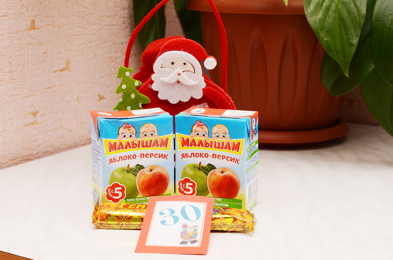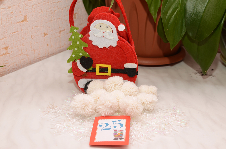 А сюрприз лежит в корзинке с Дедом Морозом.