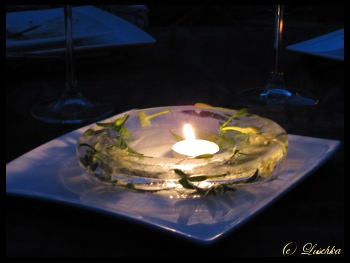 Раз декабрь самый темный, сделаем подсвечники, изо льда конечно! Чтобы было дома светлее, устраиваем ужин при свечах.