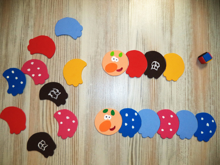 Обе игры похожи по правилам: бросаем кубик с цветными гранями, выбираем фрагмент соответствующего цвета, собираем башенку/гусеницу. Выигрывает самая высокая/длинная башенка/гусеница. Поиграли, остались довольны, периодически возвращаемся к ним, но всегда хочется попробовать еще что-нибудь новенькое!