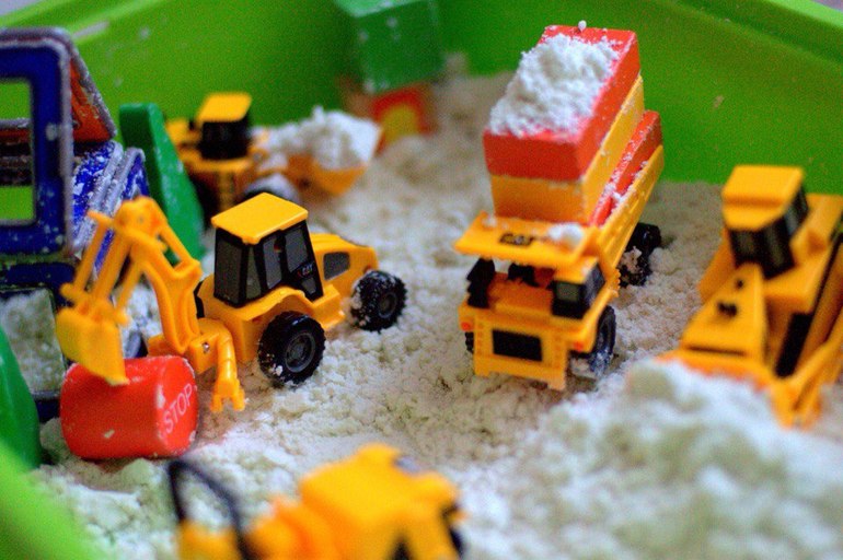 Снег - это крахмал, смешанный с маслом, можно использовать детское масло, я брала подсолнечное, некоторые берут пену для бритья, а кто-то заменяет крахмал, содой например))