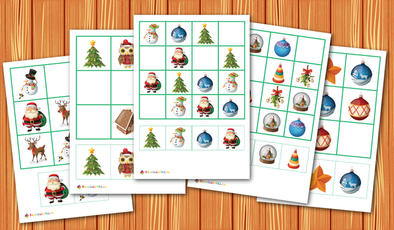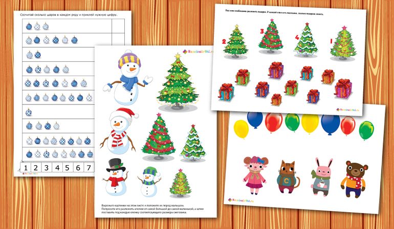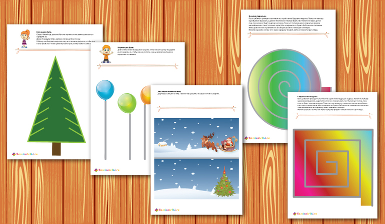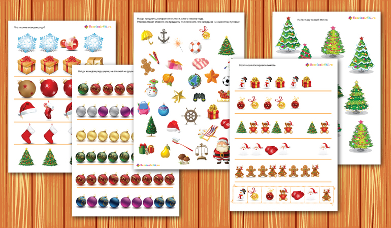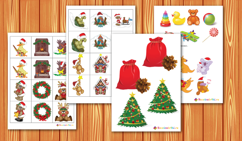 Необходимо запомнить: какие игрушки под елочкой и затем выбрать из представленных; в какой последовательности подарки под елочкой и расставить также; где и какие шарики висят на елочке и повторить это; запомнить подарки каждого из детей.