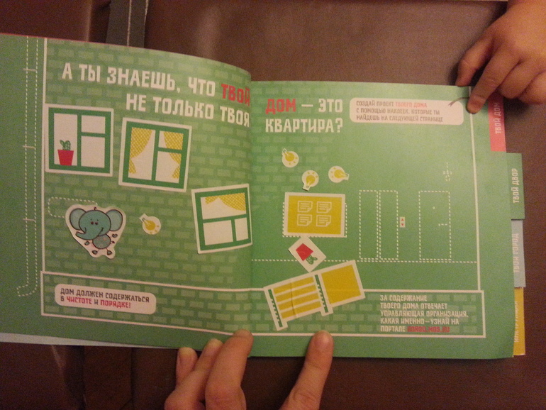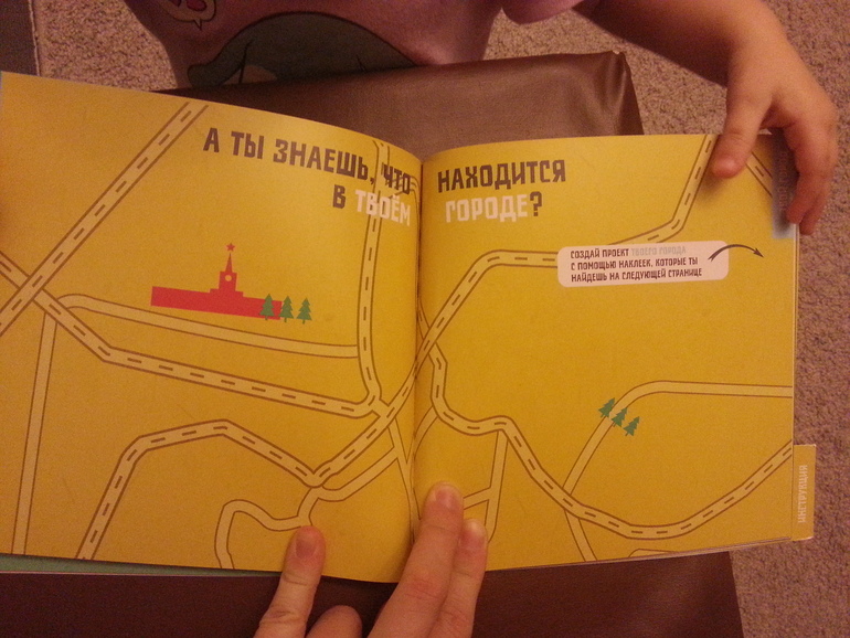 Открыла - а там!!! Короче на несколько вечеров нам занятие обеспечено :) Книга эта - о том, как должен выглядеть дом, подъезд и город. Но что самое главное - там куча наклеек! И задания для страния :)