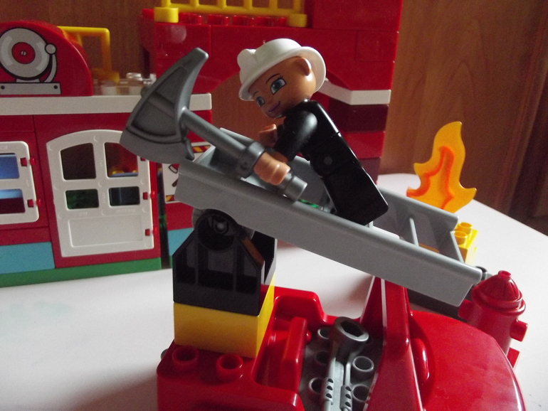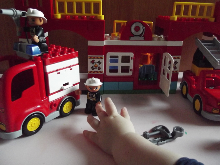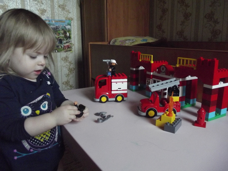 В который раз повторюсь - Lego Duplo универсальная игрушка для любого ребенка . И " Пожарная станция " не исключение ! Дочки с удовольствием играют в машинки , тушат воображаемый пожар и учатся как обращаться с огнем .