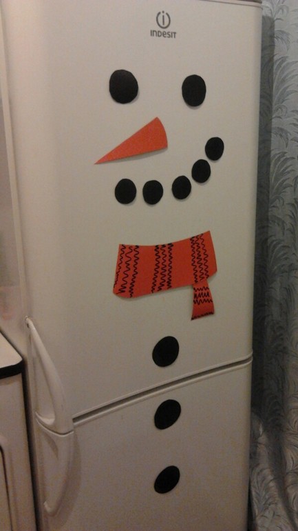 Разное (если затрудняетесь с выбором)На 4 день ''гномики'' прислали нам достаточно необычное задание... украсить холодильник' причем не просто украсить' а сделать из него снеговика!