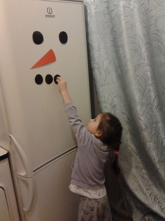 Алене осталось только приклеить элементы на холодильник в нужном порядке. Впрочем' в случае ошибки все легко можно исправить:-)