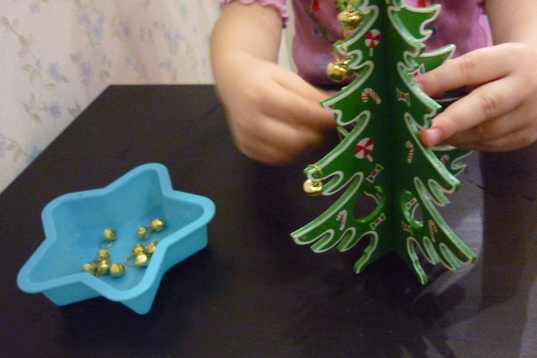 Наряжали елочку из фикс-прайса. Меня она очень расстроила. крепления бубенчиков не предназначены для детских ручек :((