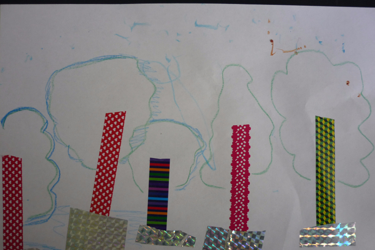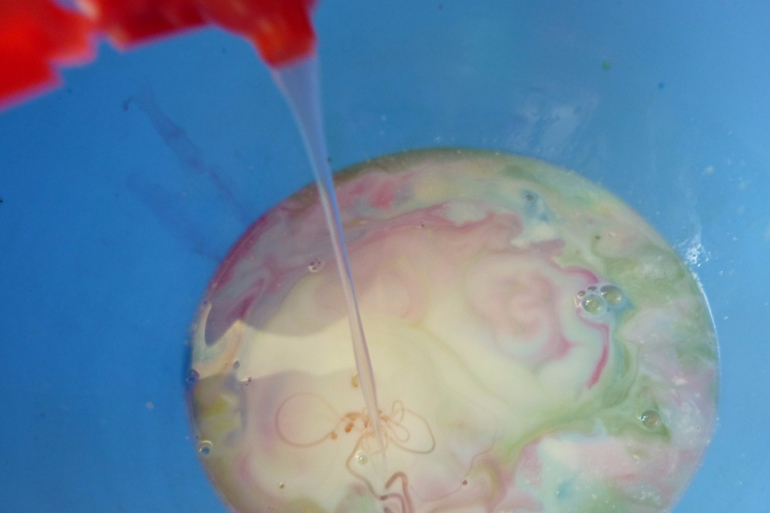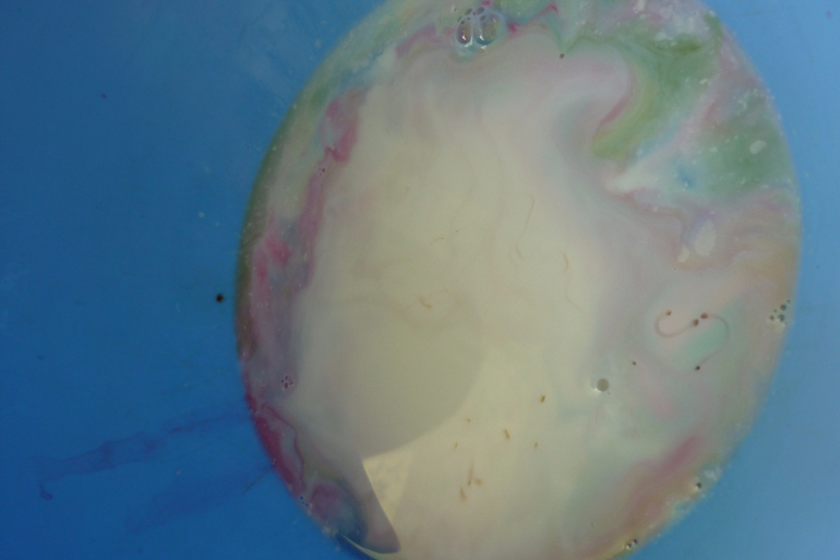наливали моющее средство и краска уходила в сторону. и у нас получался новый "лист" для творчества