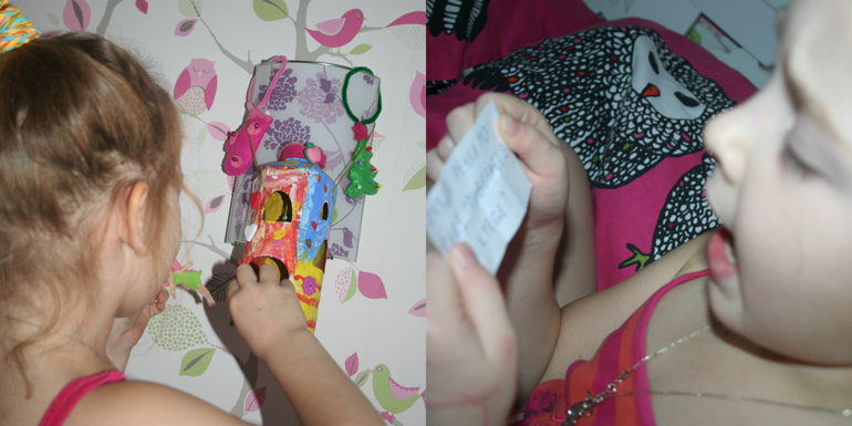 Сегодня первым испытанием Камилки на пути к заветному призу стала своеобразная полоса препятствий. Она вернулась с прогулки с папой и прямо с порога уперлась в нитку с записками. Я спросила ее, что нужно, чтобы снять записки, и Камилка не колеблясь ответила - ножницы. Ну, что же попробуй найди ножницы, они спрятаны где-то на мне - снова озадачила я дочку. Камилка с таким смехом и азартом всю меня исследовала, и кое-как отыскала ножницы в правом носке :-)