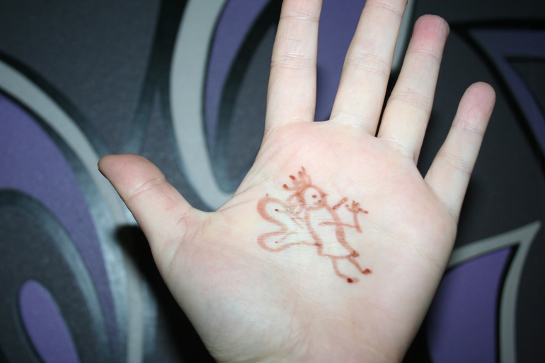 Получившееся в выделенных квадратиках слово "рука" сначала очень озадачило Камика, но потом она догадалась осмотреть мои руки и увидела феечку :-)