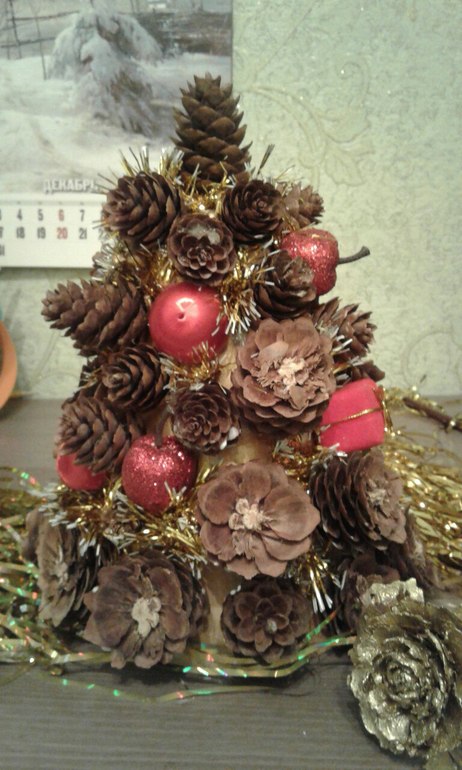 Может кому пригодится в копилку, шишки сажали на клей-секунда, основу предварительно за красили акриловой краской металлик "Луч"