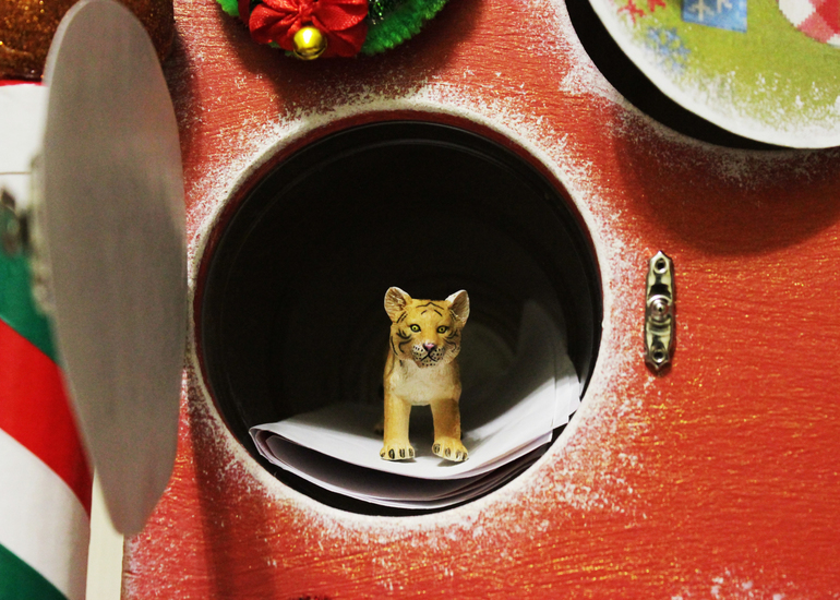 В четверг в домик для зверей к нам пришел тигренок и принес очередную записочку от деда мороза.