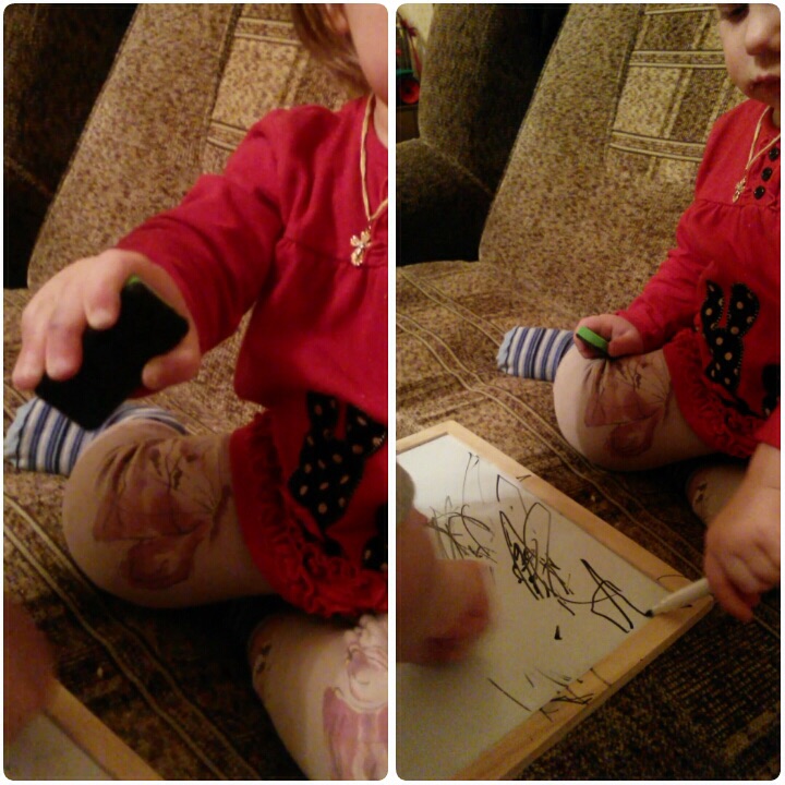 Маркеры здорово стираются широкими жесткими кисточками для рисования. Очень прикольно, получается обратный эффект, не рисуют, а стирают. Магниты можно лепить на обе стороны. Набор очень качественный, дети заняты приличное время.
