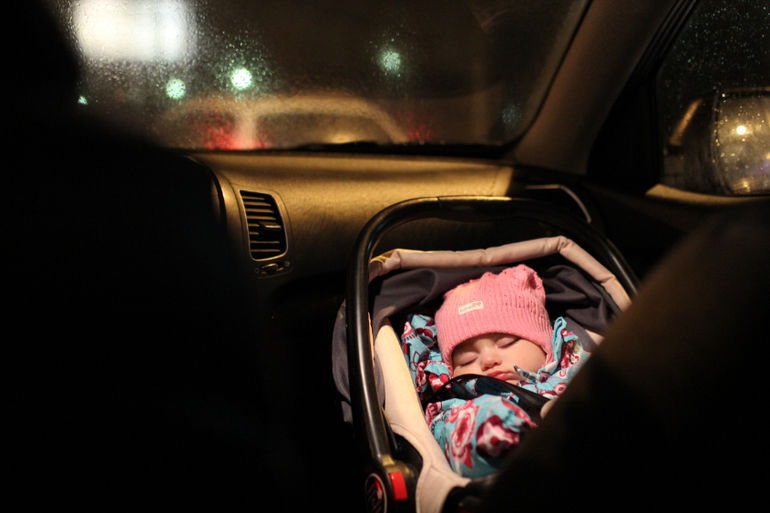 Самый младший наш человечек проспал все время прогулки и второго туда и обратно)))