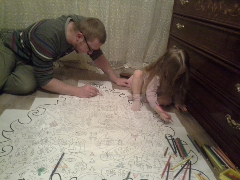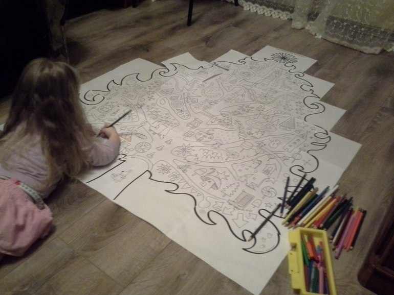Склеивать, правда, долго. Но идея супер! завтра к нам в гости семьи с детьми придут! Для них я заготовила уже готовую масштабную раскраску.