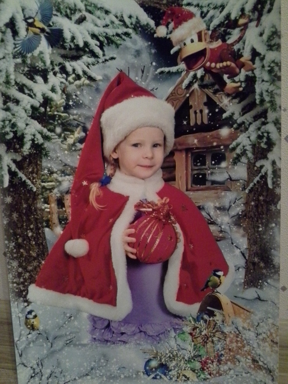 И садиковское фото с традиционным ужасным фоном тоже есть)