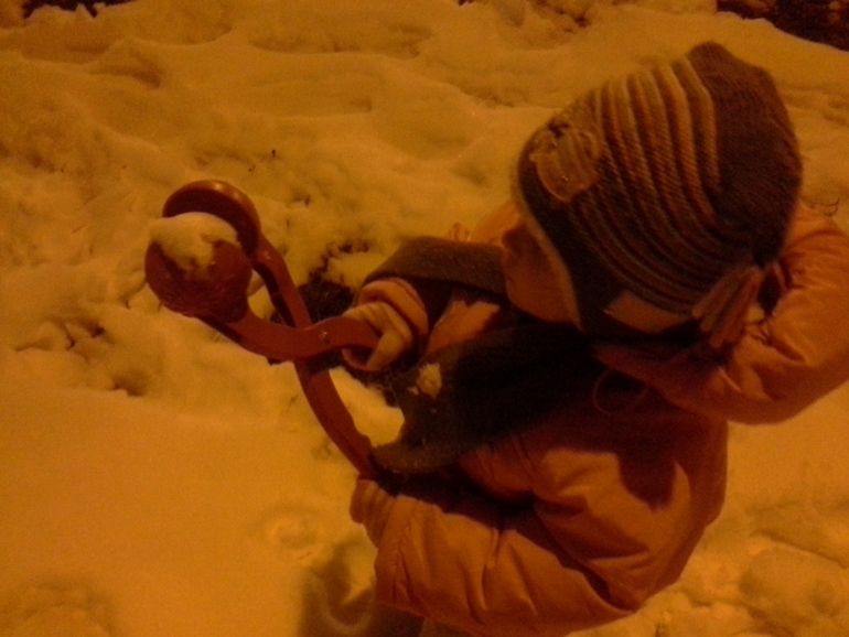 И даже снег успели поймать и поиграть с чудо-игрушкой - снежколепом