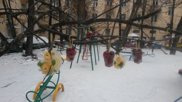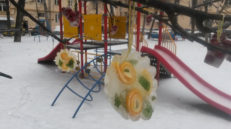 Разное (если затрудняетесь с выбором)сегодня 31 декабря, наконец- то дождались, подморозило! Мы вынесли свои заморозки и повесили их на деревце, которое раскинуло свои веточки прямо над песочницей. Хочется, чтобы у всех поднялось ( и без того, надеюсь, хорошее, настроение:)) С Новым годом!!!!!