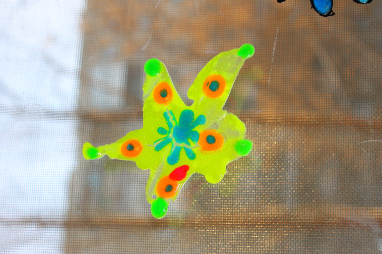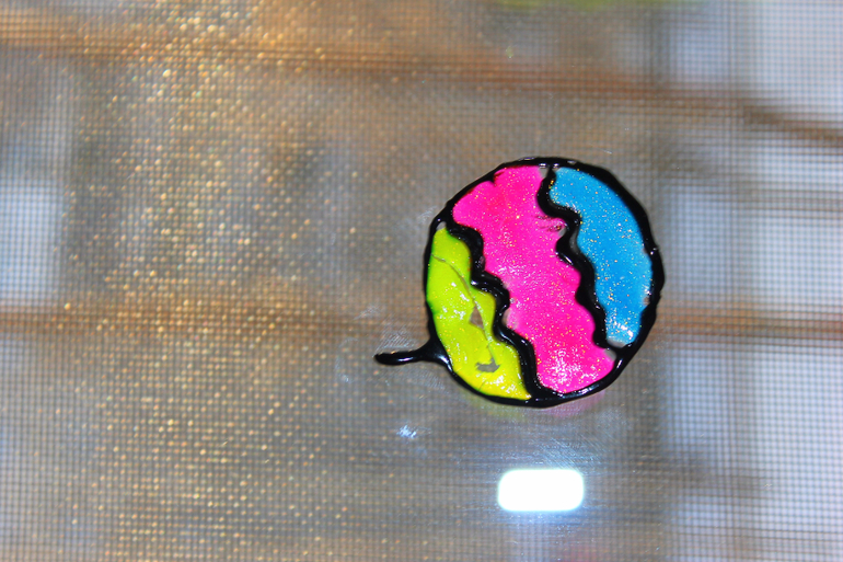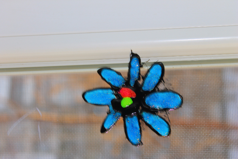 8. Еще одна самодельная игрушка на елку. Пластилин,размазанный по крышечке и всякая крашенная крупа. Темин шедевр.
