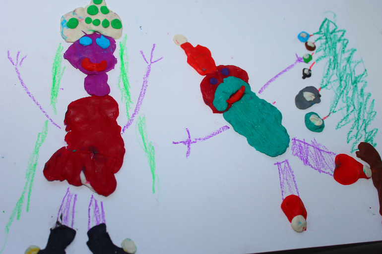 3. Пластилиновые картины. Лично Сашина инициатива и фантазия.Дед Мороз с внучкой.