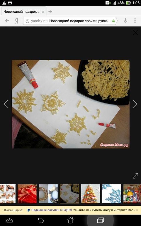 Снежинки из макарон