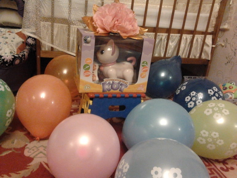 Утро началось с воздушных шариков и подарка от мамы.