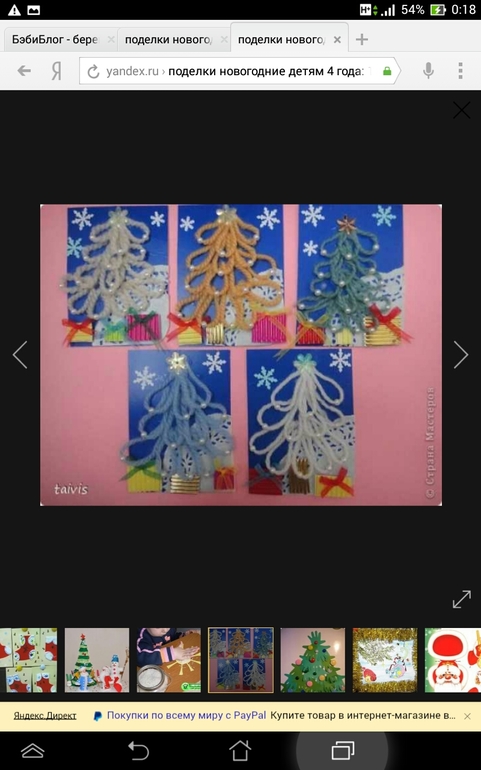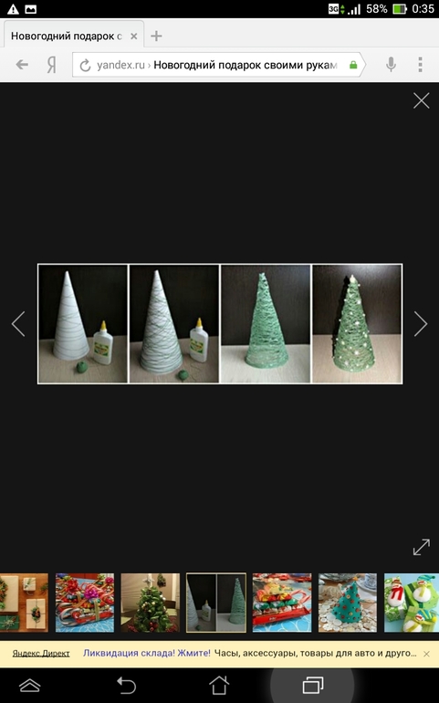 Елочки из ниток' теста и картона